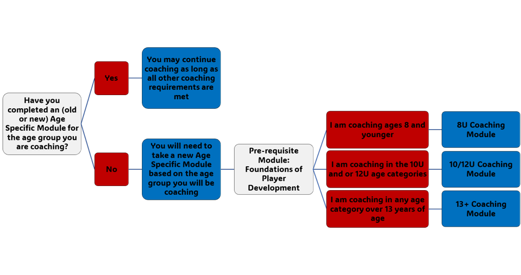 It is the responsibility of the local association to identify those coaches who do not meet the certification requirements. All coaches have until December 31 of the current season, or earlier date as established by the district and/or affiliate, to attend a USA Hockey coaching clinic. All coaches must complete the online age-specific modules PRIOR to participating with their team.